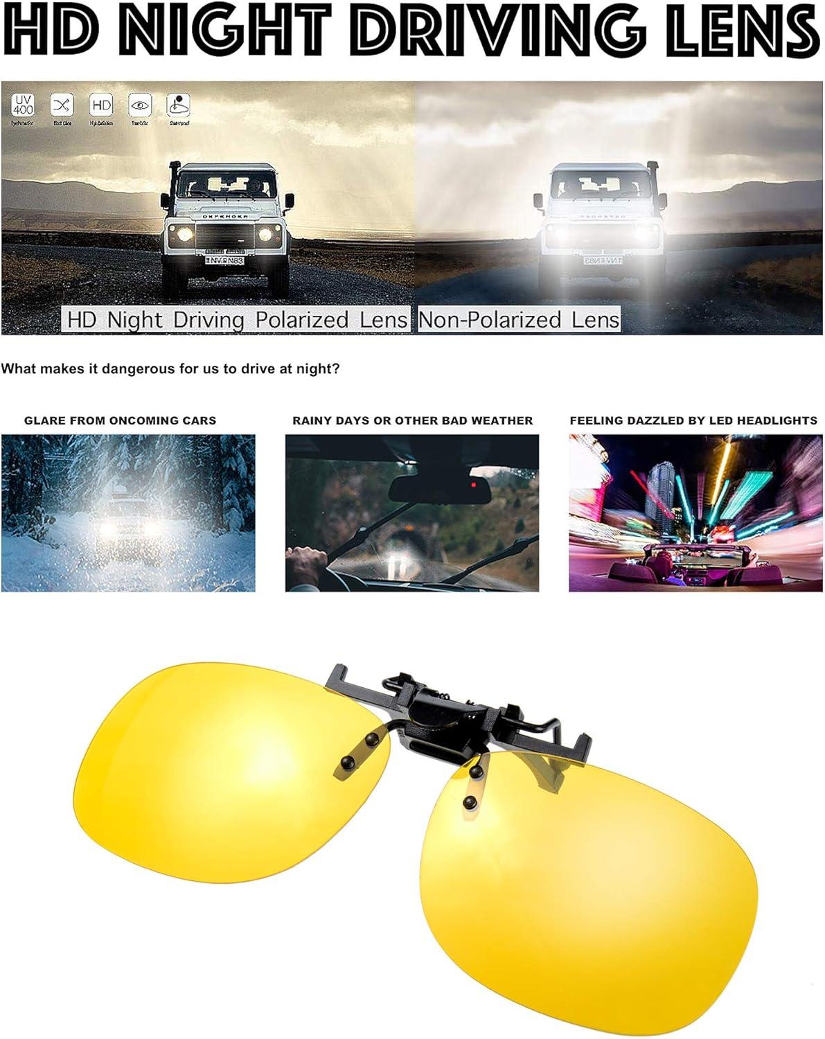 🌟Clip on & Flip up Design: Clip and go! Light weight and non-shrinking clip-ons make your night driving easy and safe. Easily flipped up the clip-ons once the work is done. No bother to take it off to make your driving safer.