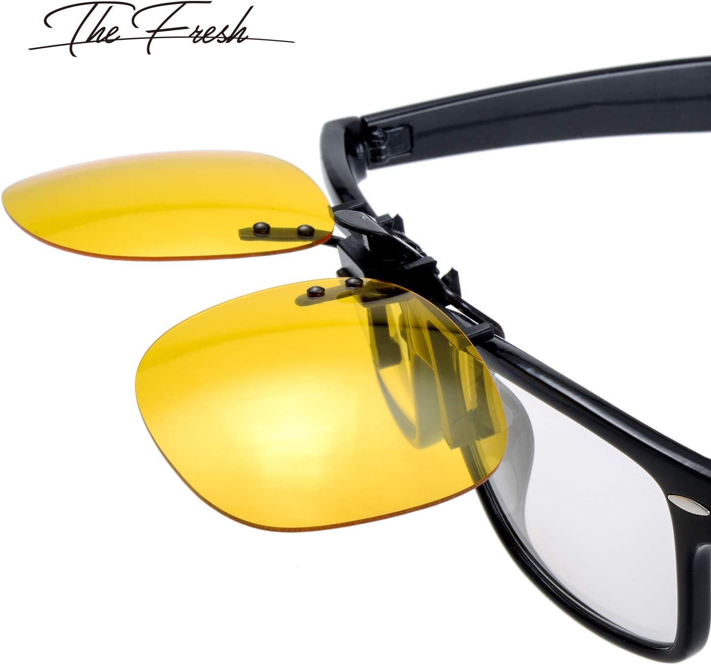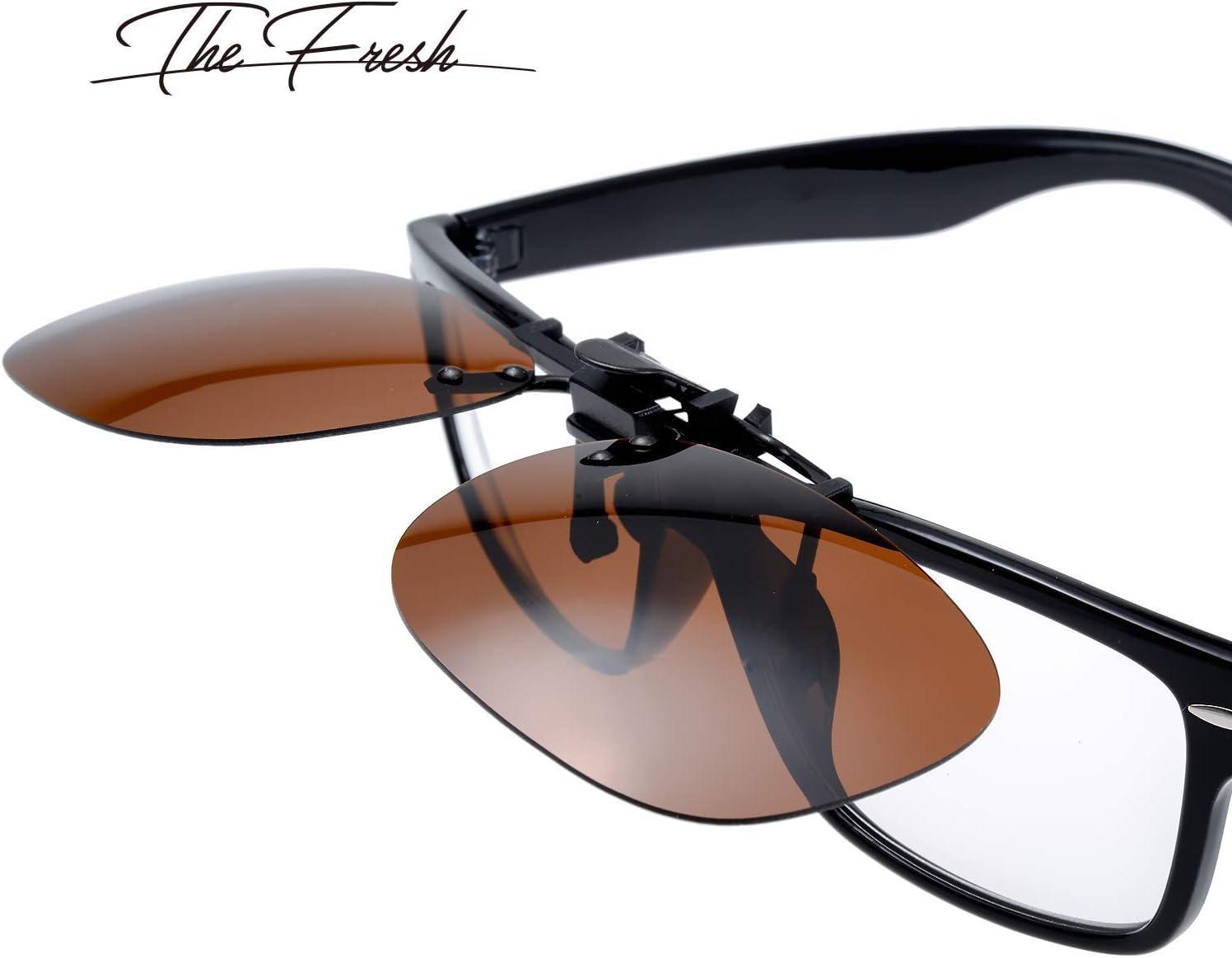 The Fresh Clip-on Polarized Brown & Night Driving Glasses on Prescription Sunglasses Eyeglass (2-Piece(Polarized Brown & Night Driving Glasses))(2-piece(polarized Grey & Night Driving Glasses))